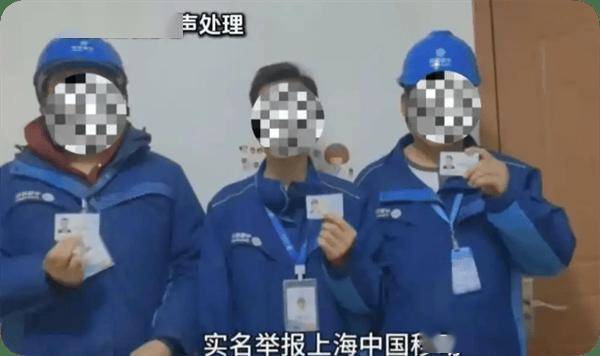 此前有媒体报道称,1月7日,上海移动被穿有蓝色工作服的“员工”实名举报,称为创收逼迫员工上门断网。如果宽带师傅不配合,就开除或考核罚款威胁。相关视频中,三名男子自称是上海移动宽带师傅,身着带有“中国移动”字样的蓝色工服,脖颈上挂着工作证,手持身份证实名举报上海移动。(快科技)