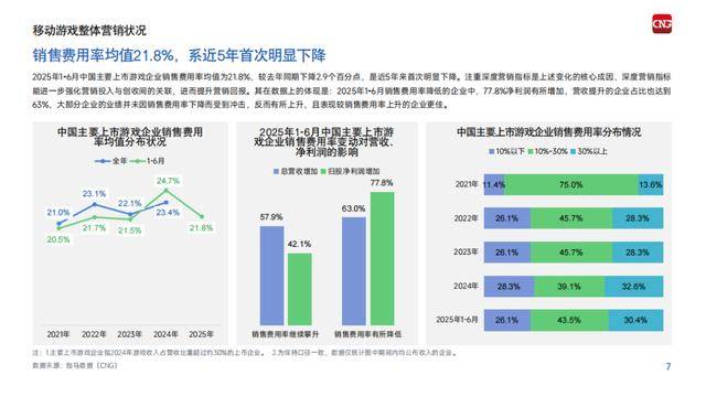 游戏工委《2025中国移动游戏广告营销报告》提到,2025年上半年中国主要上市游戏企业销售费用率均值为21.8%,较去年同期下降2.9个百分点,是近5年来首次明显下降——厂商压缩营销费用,业绩却变得更好。背后逻辑在于,增长来自旗舰级产品、来自长青大作。