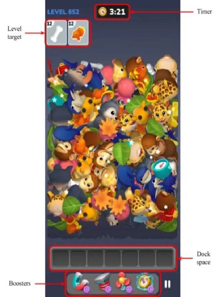 如果你仔细拆解《Triple Match 3D》的打法,会发现它几乎已经是这套机制的“标准答案”。点击操作、多槽位托盘、因空间塞满导致失败,那么还有什么是需要优化打磨的呢?