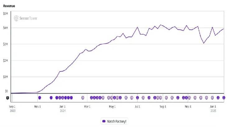 到目前为止,我们还没有看到任何一款游戏能够从《Match Factory》手里夺走丝毫的市场份额。