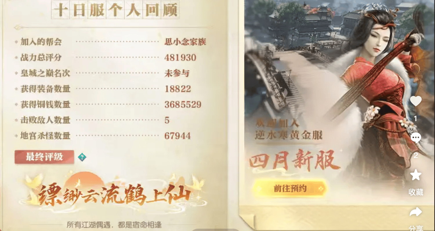 还不只是个例!也正因此在这回的“十日服”关服后,不少玩家都还意犹未尽,特别是众多神豪已经找好了下个目标——即将于4月17日开放的《逆水寒》首个黄金服情缘主题新服【CPDD】!顾名思义这组新服,入坑官方就给发CP!