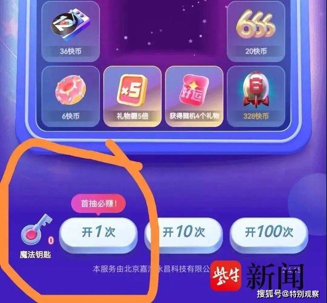 记者查看多张游戏截图发现,平台入口和游戏界面显著位置曾标有“必赚”“首抽必赚”等字样。张先生质疑:“‘必赚’是确定性承诺,客服却狡辩说是指‘必赚礼物’。还有‘一发入魂三飞船’‘翻倍狂飙8倍’这类高爆率宣传,实际抽中‘未来飞船’的概率为零——宣传说有三艘,但规则里一次最多只能抽到一艘。”