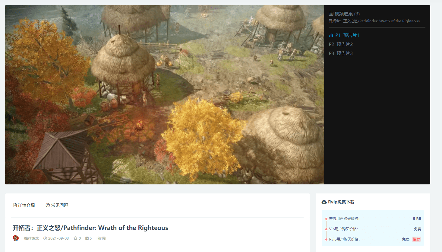游戏介绍页面也很干净有多视频介绍,图片文字GIF一个都不少,非常有视觉冲击力。